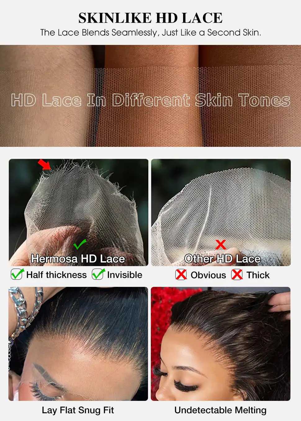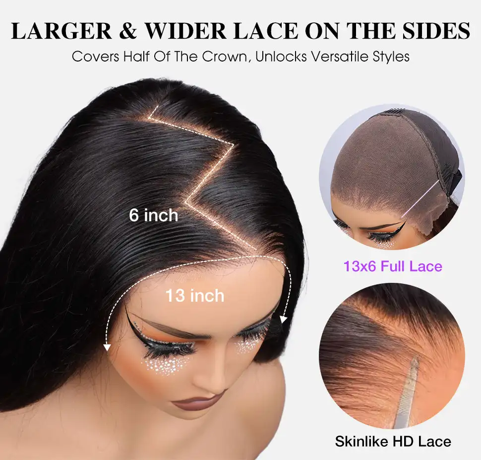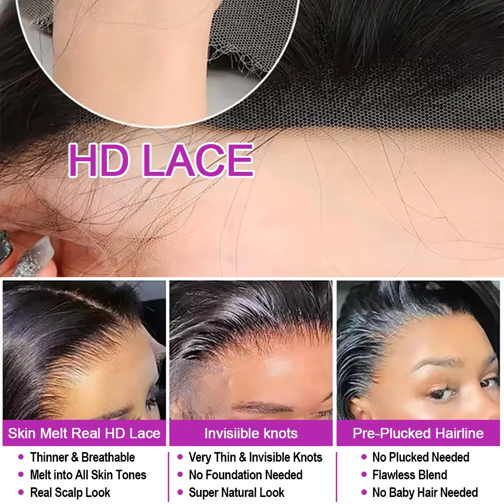 【Frontal Wigs Human Hair Lace Detail】: 13x6 HD Lace Front Wigs Human Hair, Ear to Ear Transparent Swiss Lace, Natural Hairline with Baby Hair Around, Simulated Scalp, The Lace Area Is Large, Can Make Middle Part, Side Part, and High Ponytail, Make You Hair Style More Natural and Gorgeous