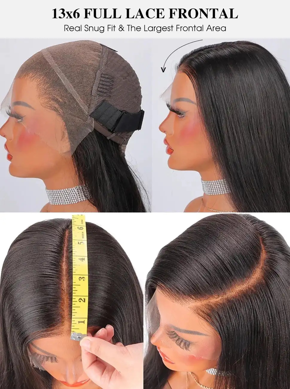 【HD Lace Front Wigs Human Hair Cap Size】: Straight Lace Front Wigs Human Hair, Average Cap Size (22-22.5 Inch) With Adjustable Straps And 4 Combs, Easy To Adjust & Durable, It Can Help You Fixed On Your Head.More Comfortable To Wear.You Will Feel Like Your Own Hair.